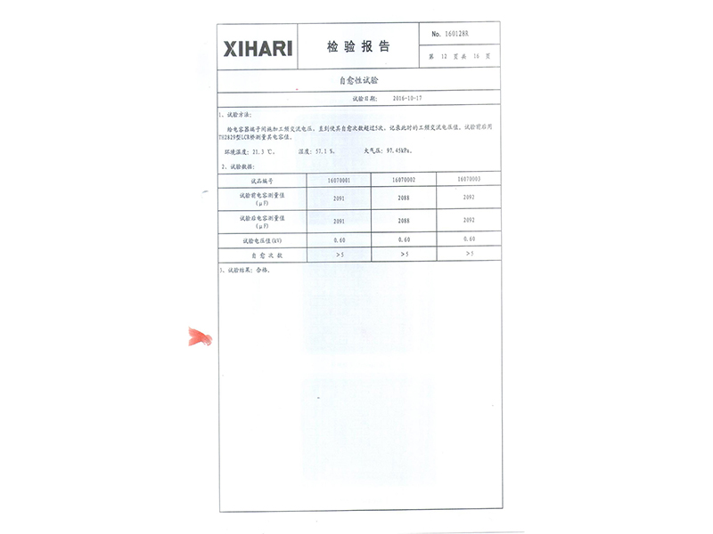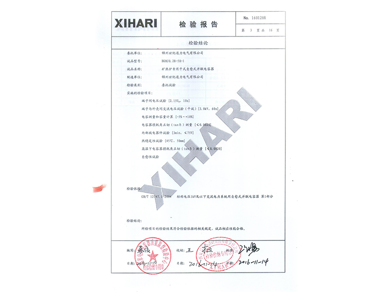 報告 礦熱爐專(zhuān)用干式自愈式電容器型式試驗報告