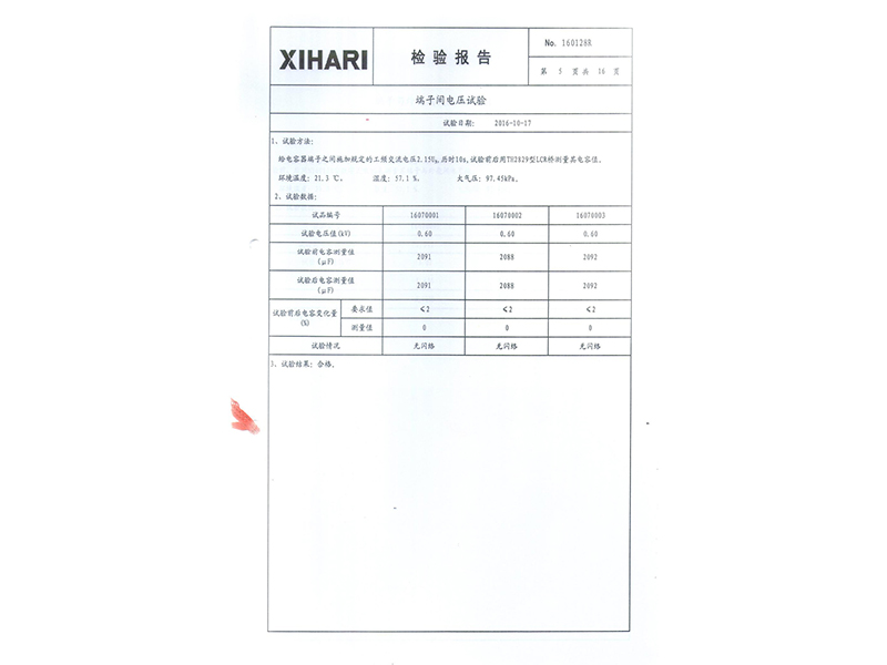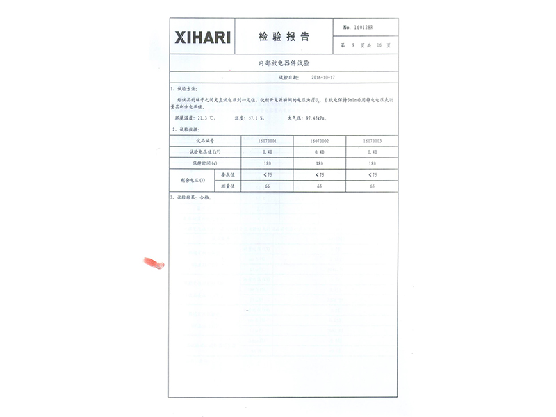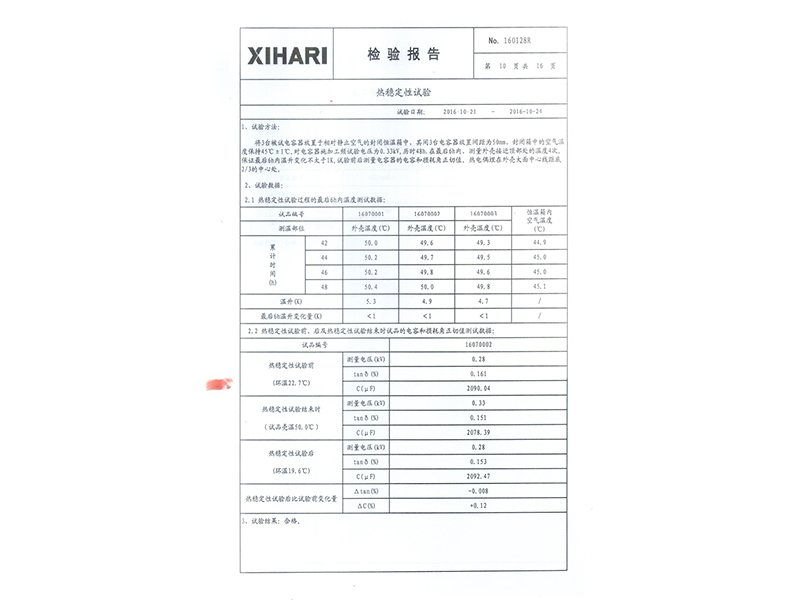 報告 礦熱爐專(zhuān)用干式自愈式電容器型式試驗報告