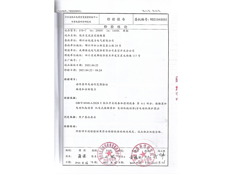 報告礦熱爐低壓無(wú)功補償專(zhuān)用真空接觸器型式試驗報告